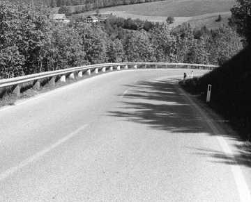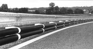 An Austrian road with a crash barrier fitted with CBP polystyrene impact attenuator |