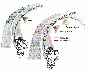 BendsRoadsides of bends and curves are often equipped with crash barriers. But a powered two wheeler is especially vulnerable in these areas. This is due to the necessity of leaning the bike to counter centrifugal forces. While the bike is leaning it is critically vulnerable to skidding, whether this would be caused by poor road surface, diesel spill, weather conditions, gravel, or mishandling of the bike. Changing the path of a bike while in a curve is a delicate maneuver. The same applies to breaking while in a curve. Thus bikes often use more of their lane to help "straighten" the bend. |